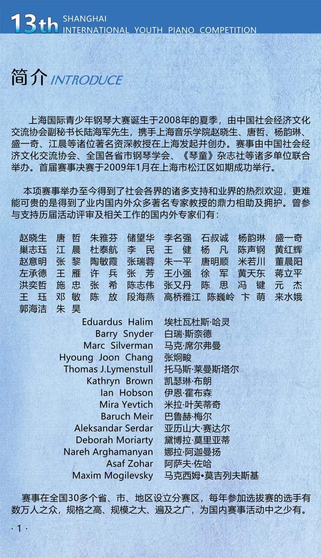 上海國際青少年鋼琴大賽是一項國際性的青少年鋼琴藝術(shù)人才推選活動。大賽以上海為中心,在全國30多個省、市、地區(qū)設(shè)立分賽區(qū),每年參加選拔賽的選手成千上萬。