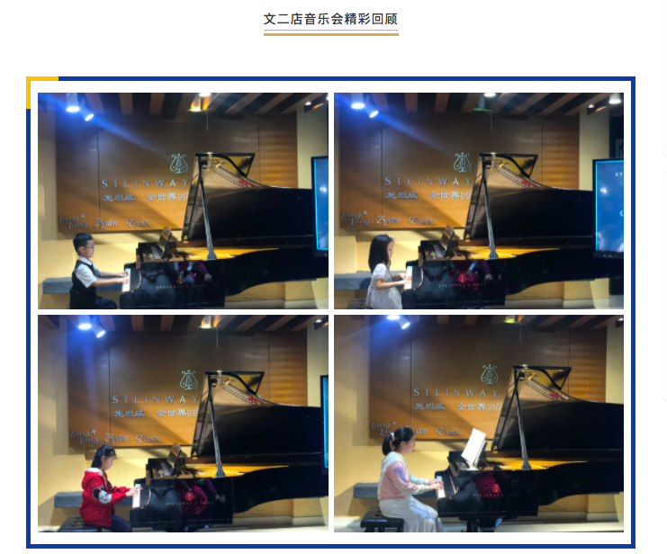 三毛琴行每月定期舉行音樂(lè)會(huì),讓學(xué)習(xí)鋼琴藝術(shù)的孩子們?cè)趧?dòng)聽(tīng)的旋律中感知音樂(lè)的美好。上周,在三毛琴行文二店和建國(guó)店分別舉行了一場(chǎng)音樂(lè)會(huì)。接下來(lái)給大家呈現(xiàn)一些音樂(lè)會(huì)現(xiàn)場(chǎng)的精彩片段