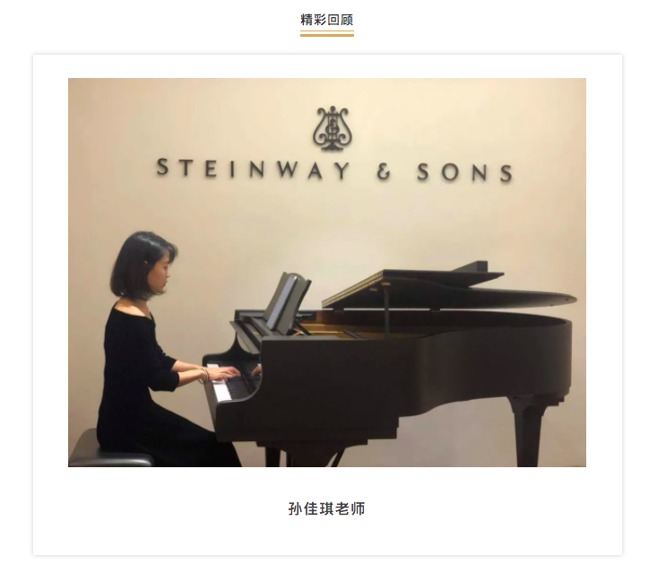 2020年11月14日,孫佳琪師生專場音樂會,在三毛琴施坦威音樂廳圓滿落下帷幕。靈動的指尖翻飛于黑白琴鍵上,傾瀉出動聽的樂章。以下為孫老師專場音樂會的一些精彩回顧。