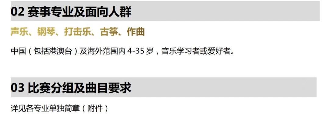 備注:可兼報多個組別(選手綜合考量自身年齡、水平、參賽曲目等條件報名相應項目組別)。