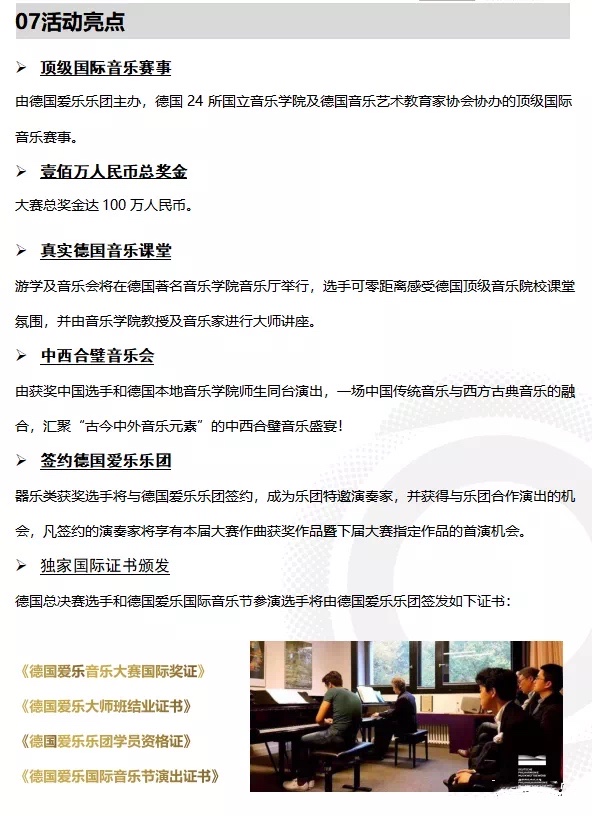 部分優(yōu)秀選手將簽約德國愛樂樂團,有機會參與德國愛樂樂團全球巡演活動。