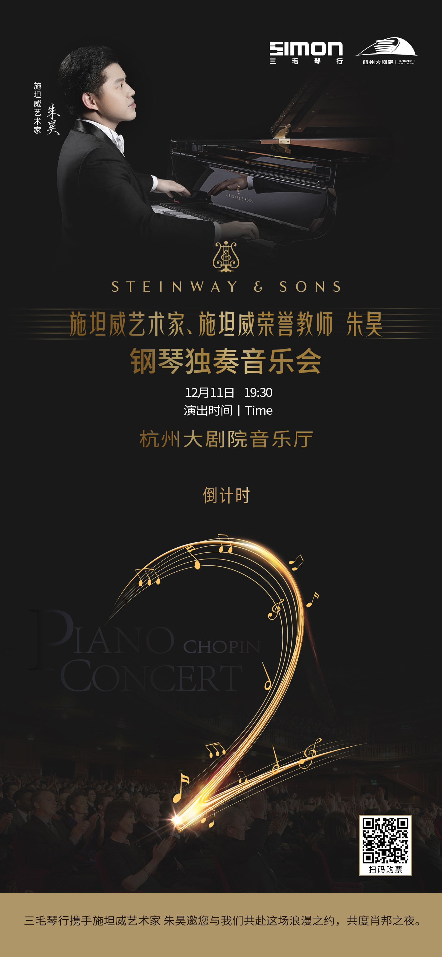 在這樣特殊的2020年,在如今全球的抗疫行動(dòng)中,華夏一枝獨(dú)秀,舉國(guó)齊心協(xié)力,共同對(duì)抗,取得抗疫的基本勝利。在這樣的時(shí)刻,勝逢這樣一位“愛(ài)國(guó)浪漫主義鋼琴詩(shī)人”的誕辰周年,適合聆聽(tīng)肖邦,一同走進(jìn)肖邦的音樂(lè)世界。故三毛琴行攜手施坦威藝術(shù)家朱昊先生推出《紀(jì)念肖邦誕辰210周年暨肖邦作品專場(chǎng)音樂(lè)會(huì)》。這是朱昊先生在杭州的首次公開(kāi)獨(dú)奏音樂(lè)會(huì),這將是對(duì)杭州這座充滿文化藝術(shù)氣息的魅力之城的一場(chǎng)深情獻(xiàn)禮!肖邦的鋼琴音樂(lè)體裁多樣,其中包括24首前奏曲、27首練習(xí)曲、4首敘事曲、4首諧謔曲、21首夜曲、58首瑪祖卡舞曲、3首奏鳴曲、17首圓舞曲、4首即興曲,此外還有幻想曲、搖籃曲、船歌等。在12月11日的鋼琴音樂(lè)會(huì)上,朱昊先生即將為我們帶來(lái)肖邦僅有的4首敘事曲中的全部曲目,此外還將帶來(lái)《前奏曲作品28號(hào)》、《升C小調(diào)夜曲》。實(shí)際以音樂(lè)會(huì)現(xiàn)場(chǎng)為主