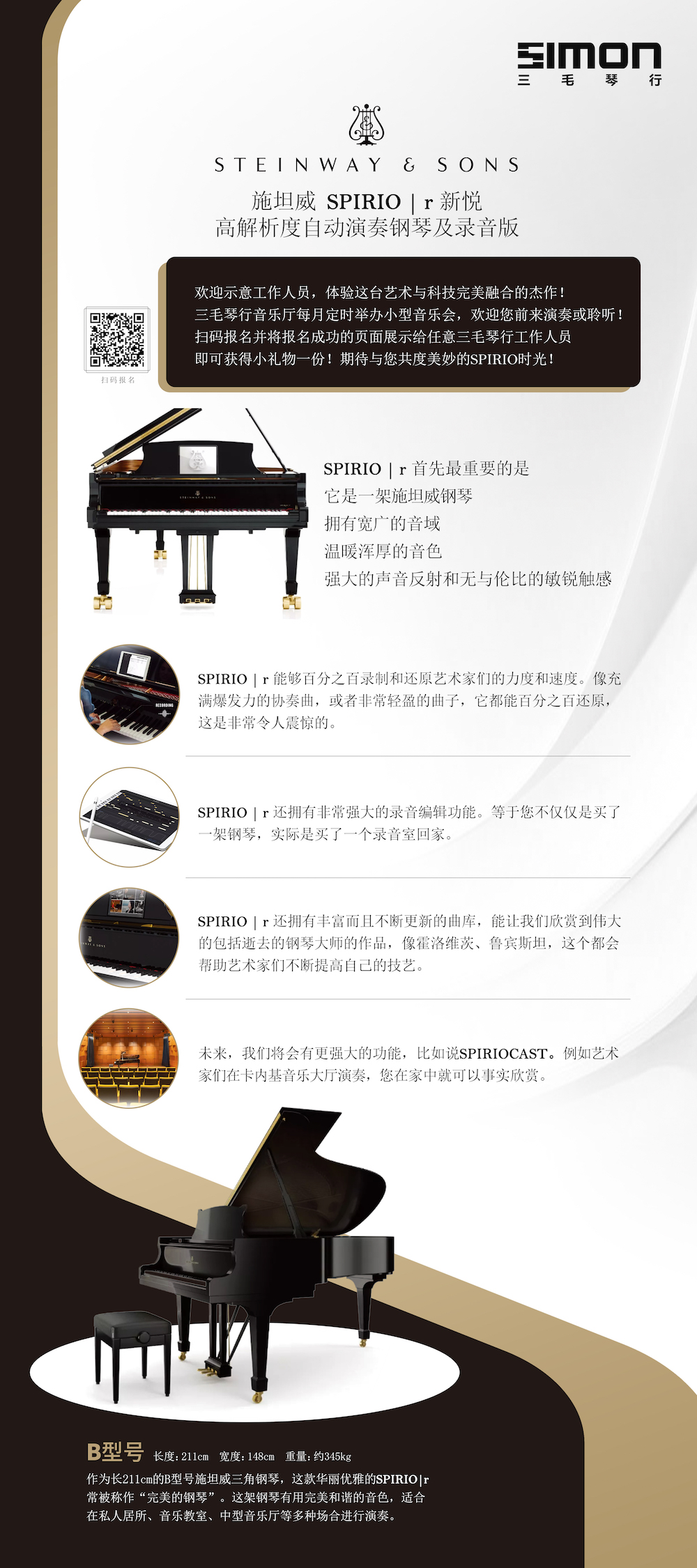 除了提供施坦威鋼琴供來賓現(xiàn)場體驗(yàn)外,三毛琴行還開放施坦威音樂廳歡迎大家前來演奏或聆聽!掃描上圖二維碼,報(bào)名參加三毛琴行舉辦的音樂會(huì),即可在現(xiàn)場領(lǐng)取小禮品一份。3、在體驗(yàn)了施坦威鋼琴的完美音質(zhì),獲得小禮品后,來賓可上二樓到達(dá)此次演出的音樂廳,正式觀看演出。溫馨提示:當(dāng)藝術(shù)家演奏結(jié)束退場后,若現(xiàn)場掌聲經(jīng)久不息,就有機(jī)會(huì)請到藝術(shù)家進(jìn)行返場表演哦!(一定要將熱情化成掌聲!)