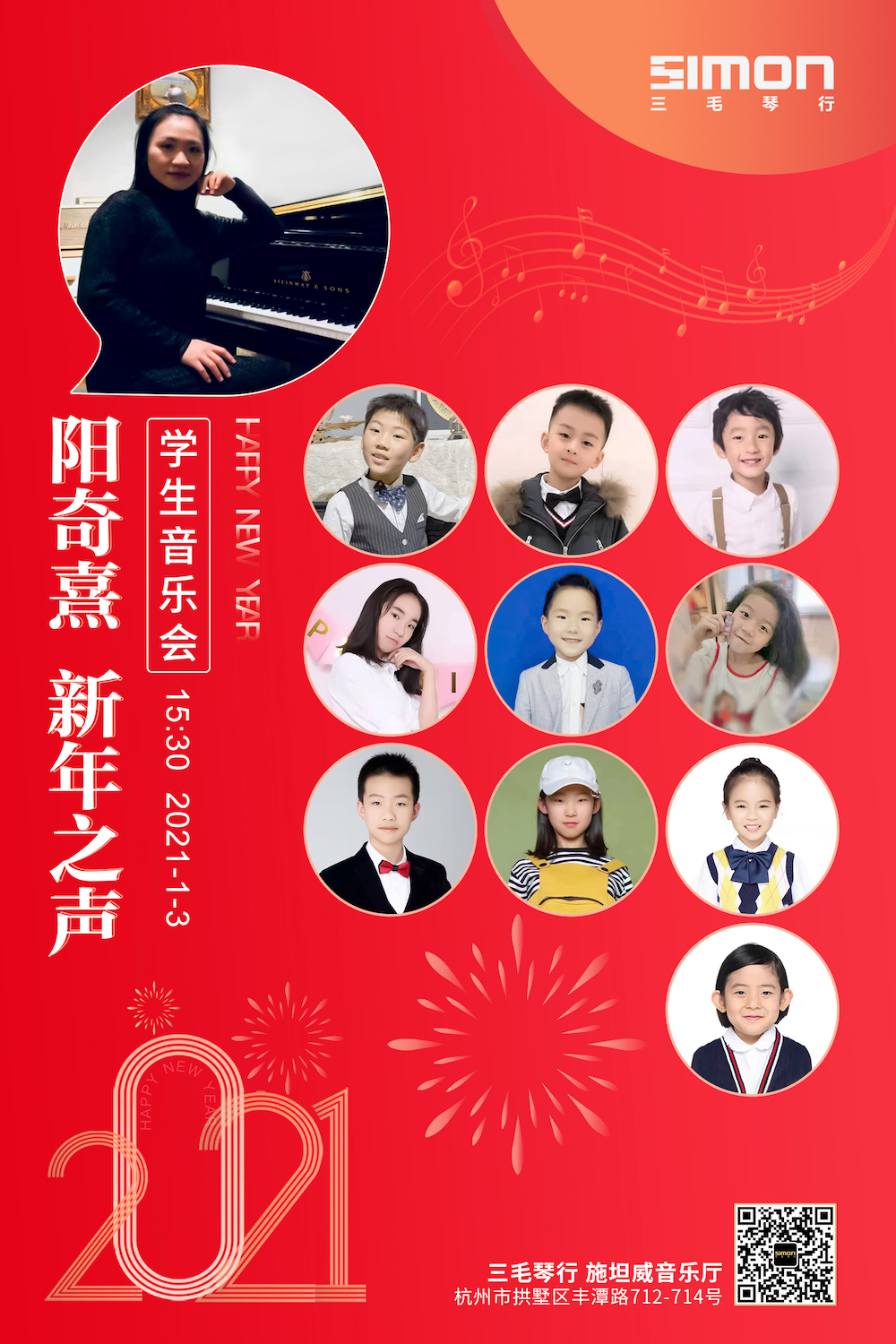 2021年1月3日,在三毛琴行豐潭店施坦威音樂廳舉行的陽奇熙新年之聲師生專場音樂會圓滿落幕。美妙動人的音樂在施坦威黑白琴鍵上飄出,令人回味悠長。以下是此次音樂會的一些精彩瞬間,毛毛和大家一起回顧。
