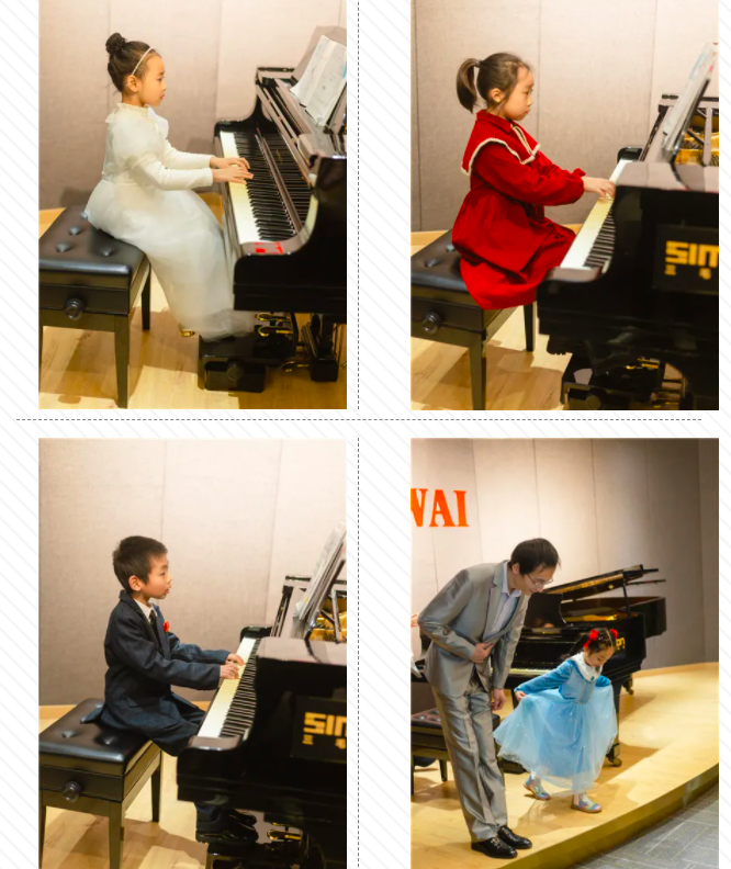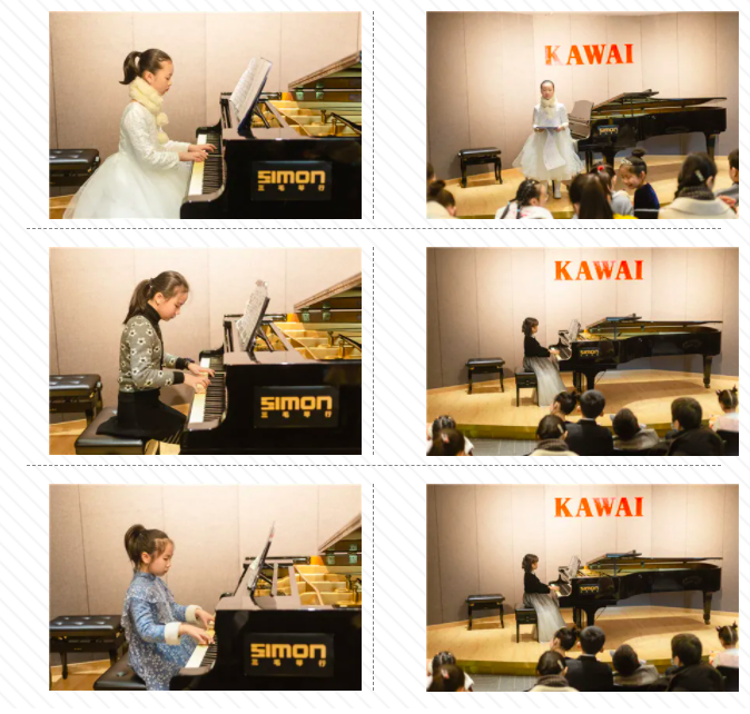 音樂的妙處正是在于此處,恰似一千個讀者有一千個哈姆雷特。即便是同一樂曲,不同的演奏者彈奏出來的便是不同的意境。小朋友們的演奏也許稍顯稚嫩生澀,但偉大演奏家的誕生之初,也正式來源于學(xué)琴之初的無數(shù)次稚嫩生澀的練習(xí)。 以下是特別記錄的小演奏家們演奏身影,和大家一同分享小演奏家們的精彩風(fēng)姿。