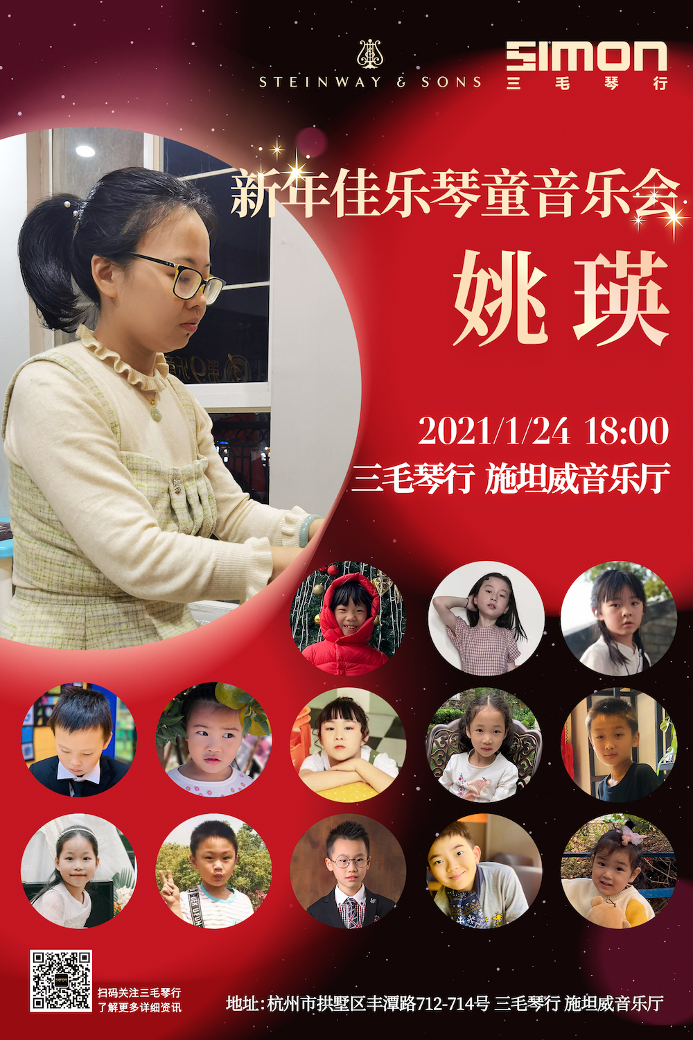 2021年1月24日,姚瑛老師帶領(lǐng)著學(xué)生們?cè)谌傩惺┨雇?/span>音樂廳舉行的新年佳樂師生專場(chǎng)音樂會(huì)圓滿落幕。美妙動(dòng)人的音樂在施坦威黑白琴鍵上飄出,令人回味悠長。以下是此次音樂會(huì)的一些精彩瞬間,毛毛和大家一起回顧。