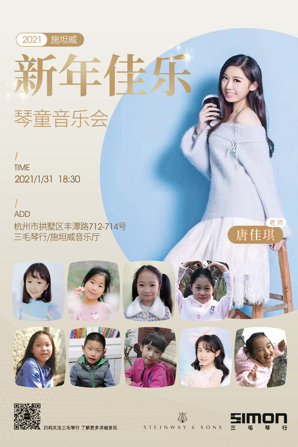 2021年1月31日,唐佳琪老師帶領(lǐng)著小琴童們?cè)谌傩惺┨雇魳窂d舉行的新年佳樂音樂會(huì)圓滿落幕。