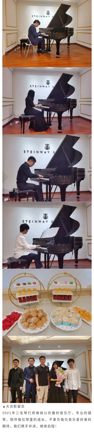 三毛琴行致力于創(chuàng)造美好,保留美好。周末定期舉辦的音樂會一直以來都受到廣大家長和琴童的認(rèn)可。優(yōu)良的音樂廳環(huán)境,專業(yè)的鋼琴老師,小琴童投入的演奏,還有三毛琴行特別準(zhǔn)備的精美茶歇,這一切都一起構(gòu)建了一個個美妙又令人懷念的周末記憶。