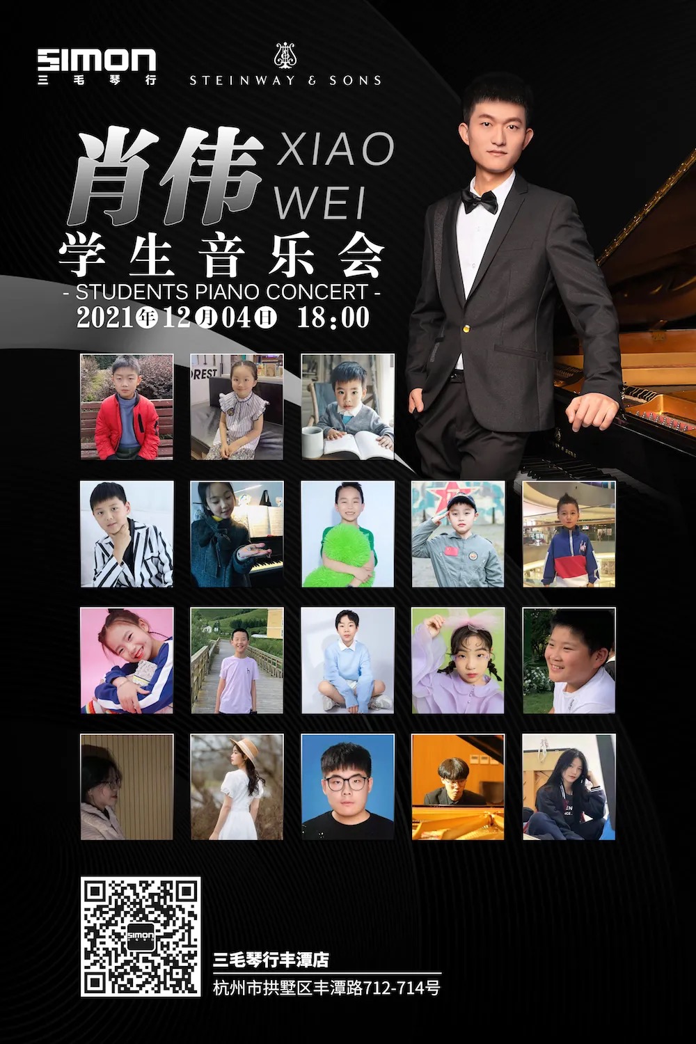 肖偉專場音樂會 肖偉,浙江音樂學(xué)院鋼琴演奏專業(yè)二年級研究生,曾以專業(yè)全省第一名的成績考入浙江音樂學(xué)院,現(xiàn)師從日籍鋼琴家北村香織教授。 肖偉在校期間學(xué)習(xí)成績、專業(yè)成績均名列前茅,多次榮獲學(xué)業(yè)一等獎學(xué)金和單項(xiàng)獎學(xué)金,并擔(dān)任班長、團(tuán)支書等多項(xiàng)職務(wù)。他多次在各類鋼琴比賽中斬獲佳績,包括上海國際青少年鋼琴大賽,德國歐米勒國際鋼琴公開賽,深圳鋼琴公開賽,全國小金鐘鋼琴大賽等。在2021浙江音樂學(xué)院鋼琴系“盡善獎”比賽中獲重奏組第一名,同年6月代表浙江音樂學(xué)院優(yōu)秀學(xué)生參加建黨100周年巡演音樂會——嘉興南湖建委、杭州師范大學(xué)、紹興文理學(xué)院、浙江音樂學(xué)院等。 同時,他在教學(xué)領(lǐng)域的成績優(yōu)異,所教學(xué)生也屢次在國內(nèi)外鋼琴比賽中獲得大獎。例如:上海國際青少年鋼琴大賽浙江賽區(qū)一等獎,全國總決賽一等獎;肖邦國際青少年鋼琴大賽浙江賽區(qū)少年組一等獎;國際青少年鋼琴家大賽中國賽區(qū)兒童組一等獎及日本總決賽二等獎;德國歐米勒國際鋼琴公開賽中國賽區(qū)總決賽青年組二等獎;VIVACE法國國際鋼琴大賽中國賽區(qū)總決賽少兒A組二等獎;以及在2021廈門國際鋼琴公開賽和肖邦國際少年兒童鋼琴比賽中,其學(xué)生包攬了兒童組、少年組、青年組、高校組和演奏家組五個組別的一等獎。 隨著音樂聲的響起,小演奏家們靈動的十指歡快地奔跑在黑白世界中。他們之中有些人演奏舒緩的樂曲,宛如山澗小溪潺潺流淌;有些人演奏急促,恍若萬馬奔騰,塵土飛揚(yáng);而有的樂曲輕松如林間小鹿歡騰嬉鬧。 音樂的妙處正是在于此處,恰似一千個讀者有一千個哈姆雷特。即便是同一樂曲,不同的演奏者彈奏出來的便是不同的意境。小朋友們的演奏也許稍顯稚嫩生澀,但偉大演奏家的誕生之初,也正式來源于學(xué)琴之初的無數(shù)次稚嫩生澀的練習(xí)。 12月4日,肖偉老師帶著他的學(xué)生在三毛琴行施坦威音樂會舉辦的專場音樂會圓滿落幕,以下是特別記錄的小演奏家們演奏身影,和大家一同分享小演奏家們的精彩風(fēng)姿。