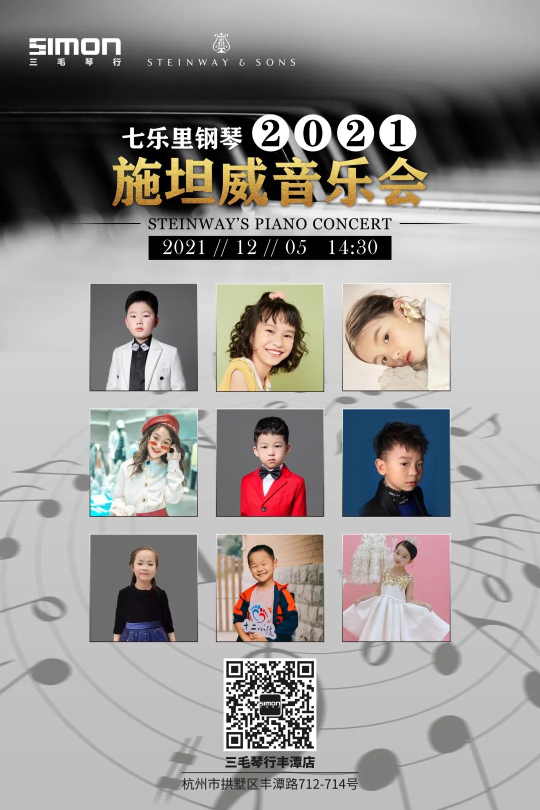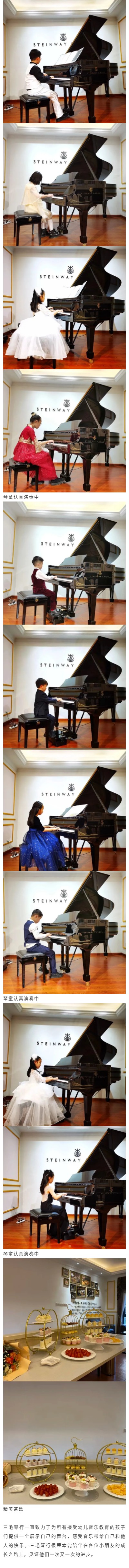 徐晶晶專場音樂會 在藝術(shù)的世界里,音樂是一泓流淌在心田的清泉,也是一汪激蕩在胸中的海浪。作為高雅藝術(shù)傳播的主要載體,音樂會必定能在引導(dǎo)大眾的文化品位和藝術(shù)修養(yǎng)上發(fā)揮著重要的作用。三毛琴行素日舉辦的各種形式的音樂會,便是為了更好的提供優(yōu)越的藝術(shù)舞臺,滿足琴童們從小對高雅藝術(shù)的需求。 在琴童們追求藝術(shù)的道路上,老師也起著至關(guān)重要的作用。作為老師,要非常注重學(xué)生學(xué)習(xí)的過程,盡量引導(dǎo)學(xué)生以科學(xué)的練琴方法完成任何作業(yè),形成一套練琴的行為方式常規(guī)。通過科學(xué)的學(xué)習(xí)方法,追求更好的學(xué)習(xí)效果。姚老師便是如此,不斷的啟蒙教育學(xué)生。 12月5日,徐晶晶老師帶著他的學(xué)生在三毛琴行施坦威音樂會舉辦的專場音樂會圓滿落幕,以下是特別記錄的小演奏家們演奏身影,和大家一同分享小演奏家們的精彩風(fēng)姿。