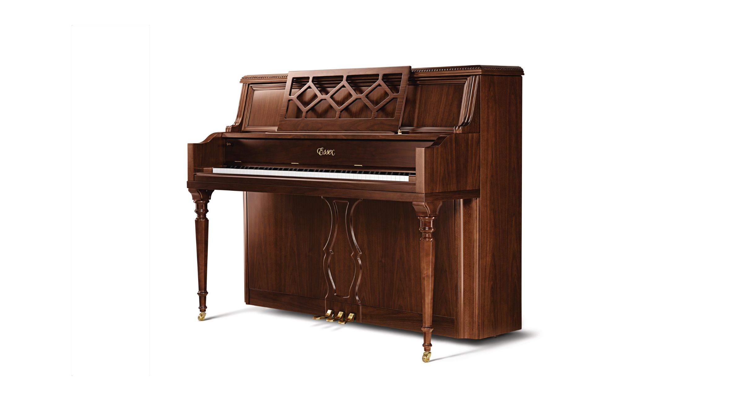 艾塞克斯鋼琴絕對是物超所值的投資保證。每一臺艾塞克斯鋼琴均出自施坦威設計,且由經過施坦威培訓的技師提供維護服務。自施坦威公司于 1900 年推出以來,這種經典的謝拉頓式 (Sheraton) 設計已經受了 100 多年的考驗。