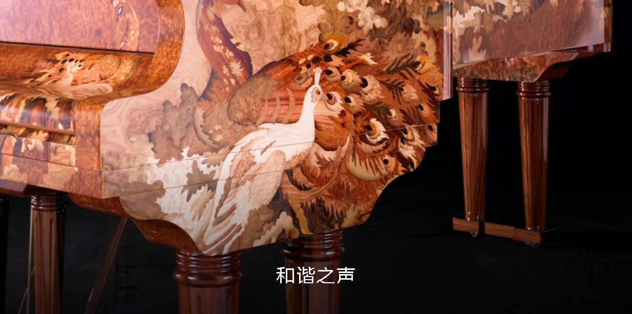 在鋼琴界,談及鋼琴與中國(guó)當(dāng)代藝術(shù)的完美結(jié)合,施坦威藝術(shù)外殼鋼琴 “和諧之聲”總是為人所津津樂(lè)道。和諧之聲鋼琴以40余種不同珍稀木材歷時(shí)四年全手工悉心打造。五彩斑斕的羽翼、靈動(dòng)的潺潺流水、盤(pán)根錯(cuò)節(jié)的樹(shù)枝,大自然的鬼斧神工在琴身上顯得如此栩栩如生,生機(jī)勃勃。最大程度上還原中國(guó)著名當(dāng)代畫(huà)大師石齊于1989年創(chuàng)作的中國(guó)畫(huà)名作《孔雀》的神韻,更將鋼琴與中國(guó)當(dāng)代藝術(shù)的完美結(jié)合引領(lǐng)至前所未有的高度。
