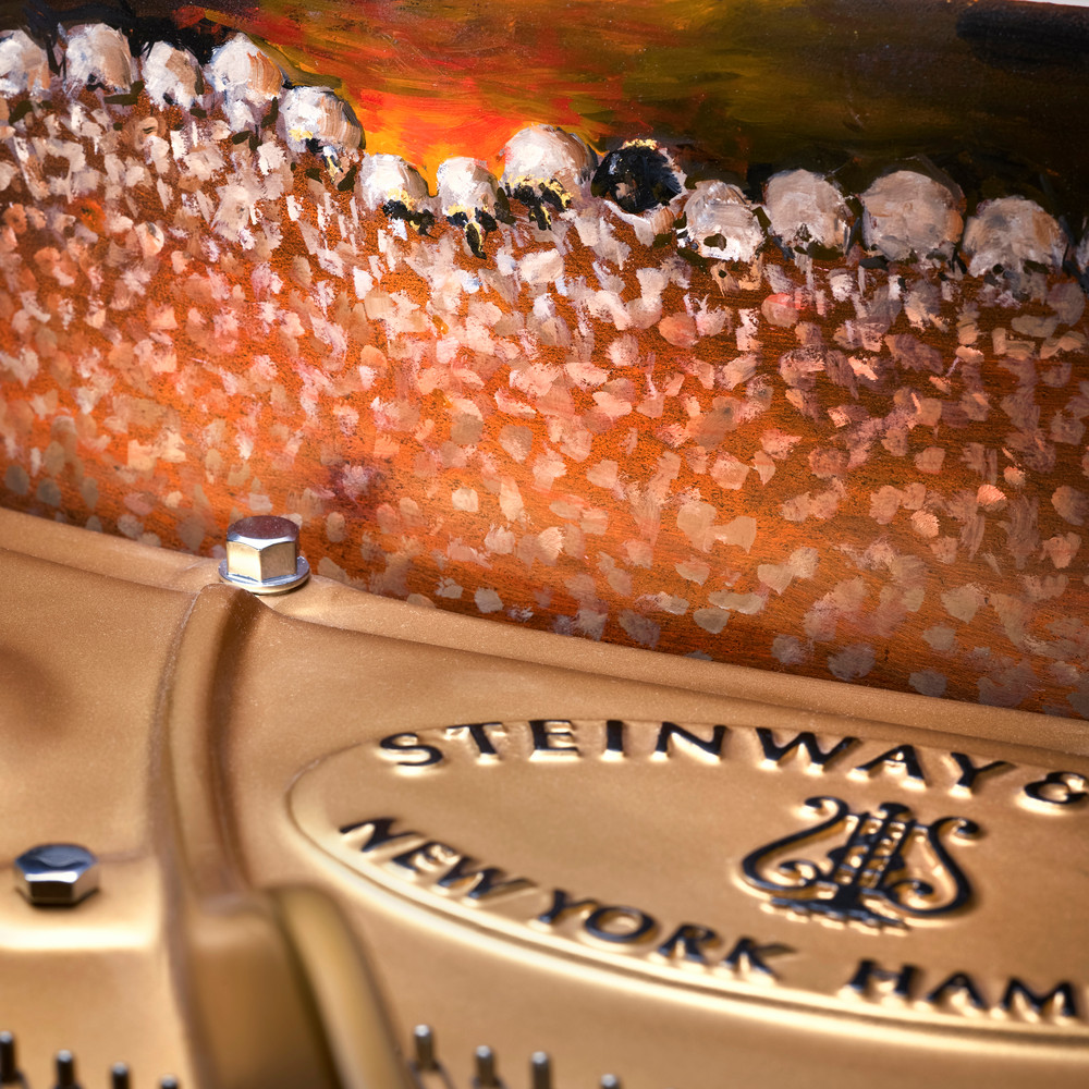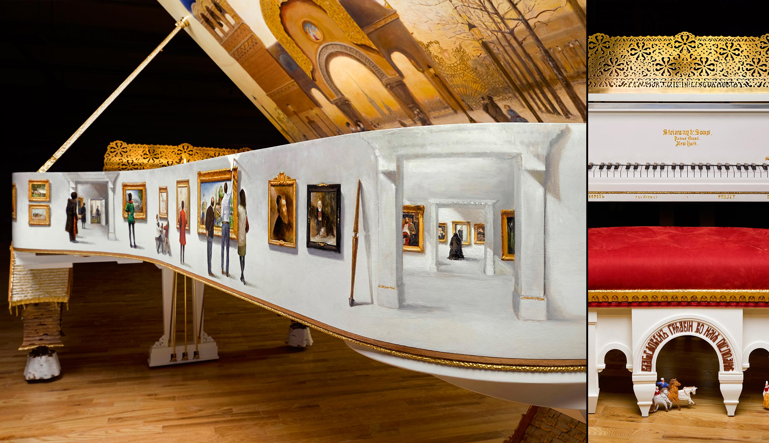 在保羅的構(gòu)思和創(chuàng)作下,這架施坦威D型號三角鋼琴生動地再現(xiàn)出1874年由穆索爾斯基創(chuàng)作的、層次豐富且錯綜交織的鋼琴組曲《圖畫展覽會》,造就了這架集視覺藝術(shù)、俄羅斯歷史與與精湛手工藝的驚人杰作。保羅精心設(shè)計了每一個細(xì)節(jié),令人駐足觀賞,流連忘返,贊不絕口。